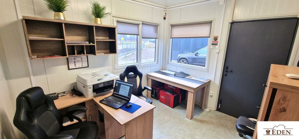 Na terenie znajduje się budynek biurowy z pełnym zapleczem sanitarnym, wykończony i wyposażony tak, aby można było rozpocząć pracę od razu po zakupie.