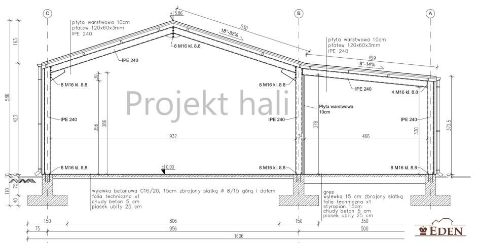 Następnym atutem jest nowa hala o konstrukcji stalowej, o wymiarach 8 9 metrów i wysokości od 4,5 do 6 metrów, wyposażona w siłę, oświetlenie oraz automatyczną bramę sterowaną pilotem. Hala została zakotwiona w sposób umożliwiający jej ewentualne przestawienie, co daje dużą elastyczność w kształtowaniu przestrzeni.